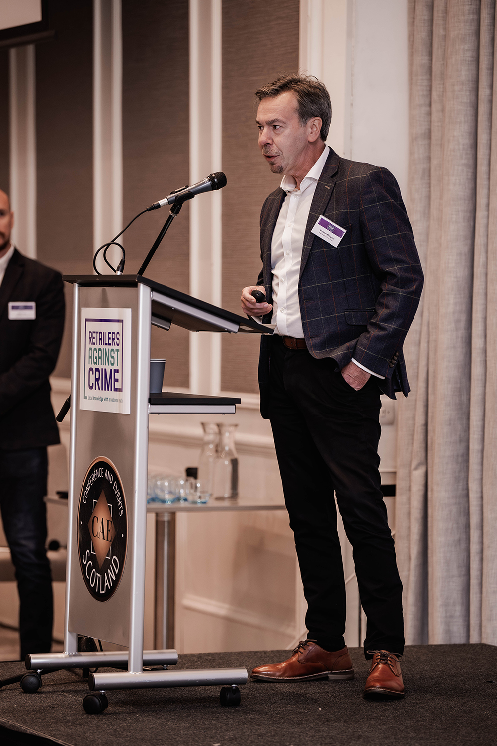 Assistant Chief Constable Tim Mairs took the stage to discuss the collaborative efforts between SentrySIS, RAC, and Police Scotland, particularly focusing on a pilot scheme in the Fife Police area. This initiative allows national retailers to report shoplifting online directly to Police Scotland, streamlining the reporting process.