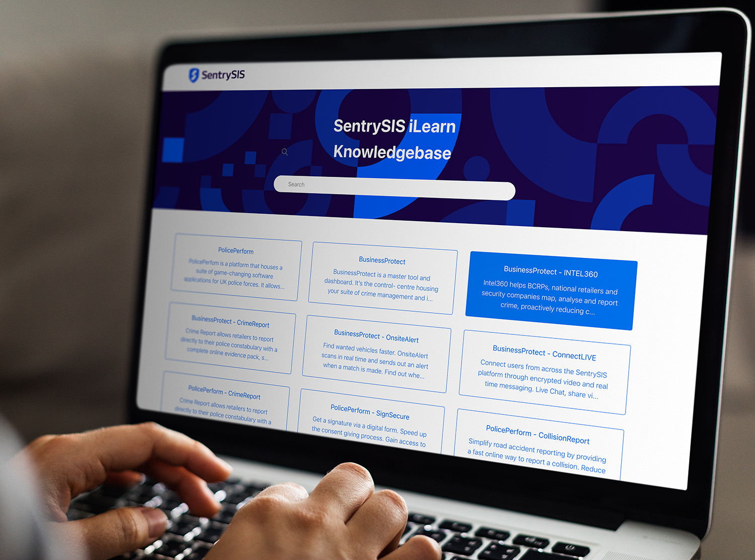 The SentrySIS iLearn knowledge base covers key system processes such as online crime reporting to the police, sending incidents to system admin or running extensive AI kaleidoscope searches to identify serious organised criminals and their associates.